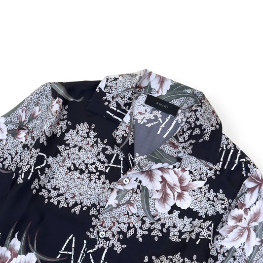 AMIRI HIBISCUS TIKI SILK SHIRT BLACK M