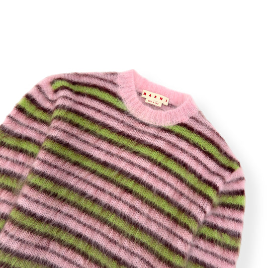 MARNI MOHAIR LONG-SLEEVE CREWNECK STRIPED SWEATER PINK / GREEN 48 / M