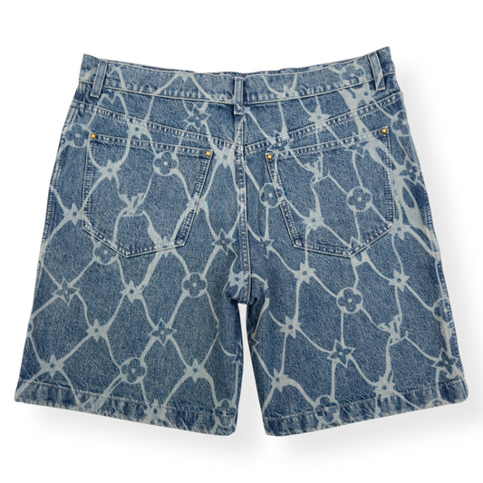 LOUIS VUITTON MONOGRAM PRINTED DENIM SHORTS INDIGO BLUE W34” / L