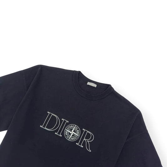 DIOR X STONE ISLAND OVERSIZED LOGO EMBROIDERED T-SHIRT BLACK / WHITE XL