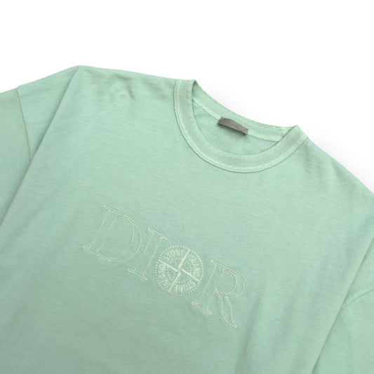 DIOR X STONE ISLAND OVERSIZED LOGO EMBROIDERED T-SHIRT TURQUOISE / WHITE XL