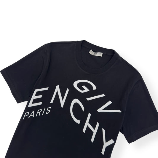 GIVENCHY SLIM FIT REFRACTED LOGO EMBROIDERED T-SHIRT BLACK / WHITE M