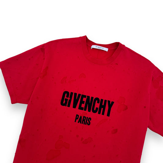 GIVENCHY OVERSIZED DISTRESSED LOGO T-SHIRT RED XS