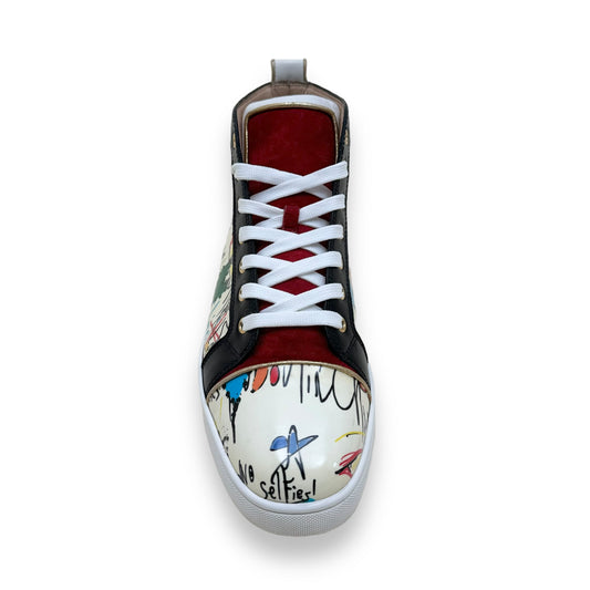 CHRISTIAN LOUBOUTIN GRAFFITI LOUIS HIGH TOP PATENT LEATHER SNEAKER UK8