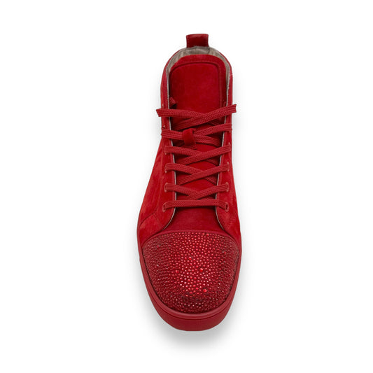 CHRISTIAN LOUBOUTIN VEAU VELOUR STRASS HIGH TOP SNEAKER RED UK9