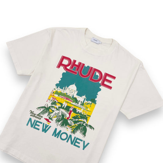 RHUDE ‘NEW MONEY’ GRAPHIC PRINT T-SHIRT CREAM L