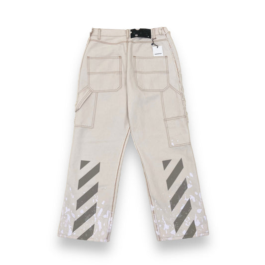 OFF-WHITE DISTRESSED PAINT SPLATTER CARPENTER TROUSERS 31W