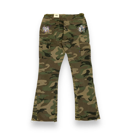 MNML FLARED PAINT CARGO PANTS GREEN 40W