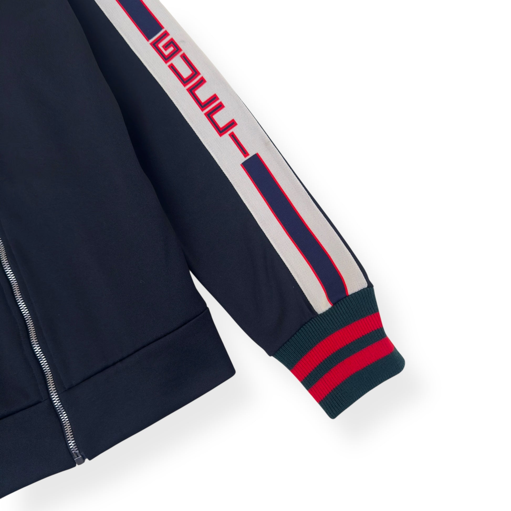 GUCCI TECHNICAL JERSEY TRACK JACKET BLACK / WHITE / RED M