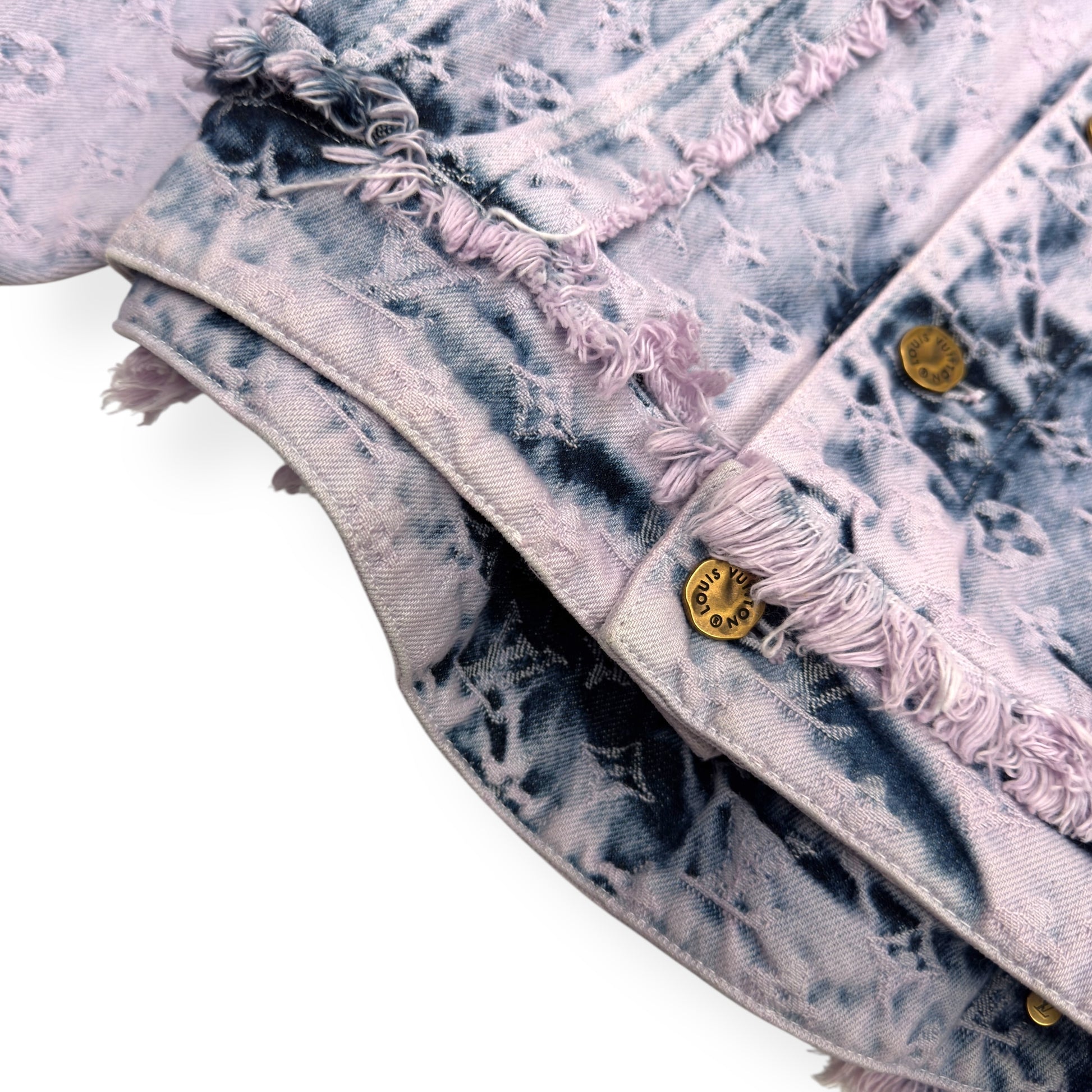 LOUIS VUITTON FRINGED MONOGRAM BOYHOOD DENIM JACKET LILAC L