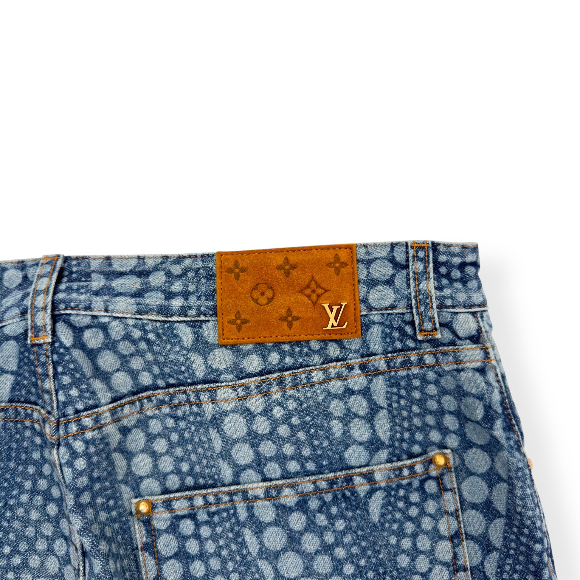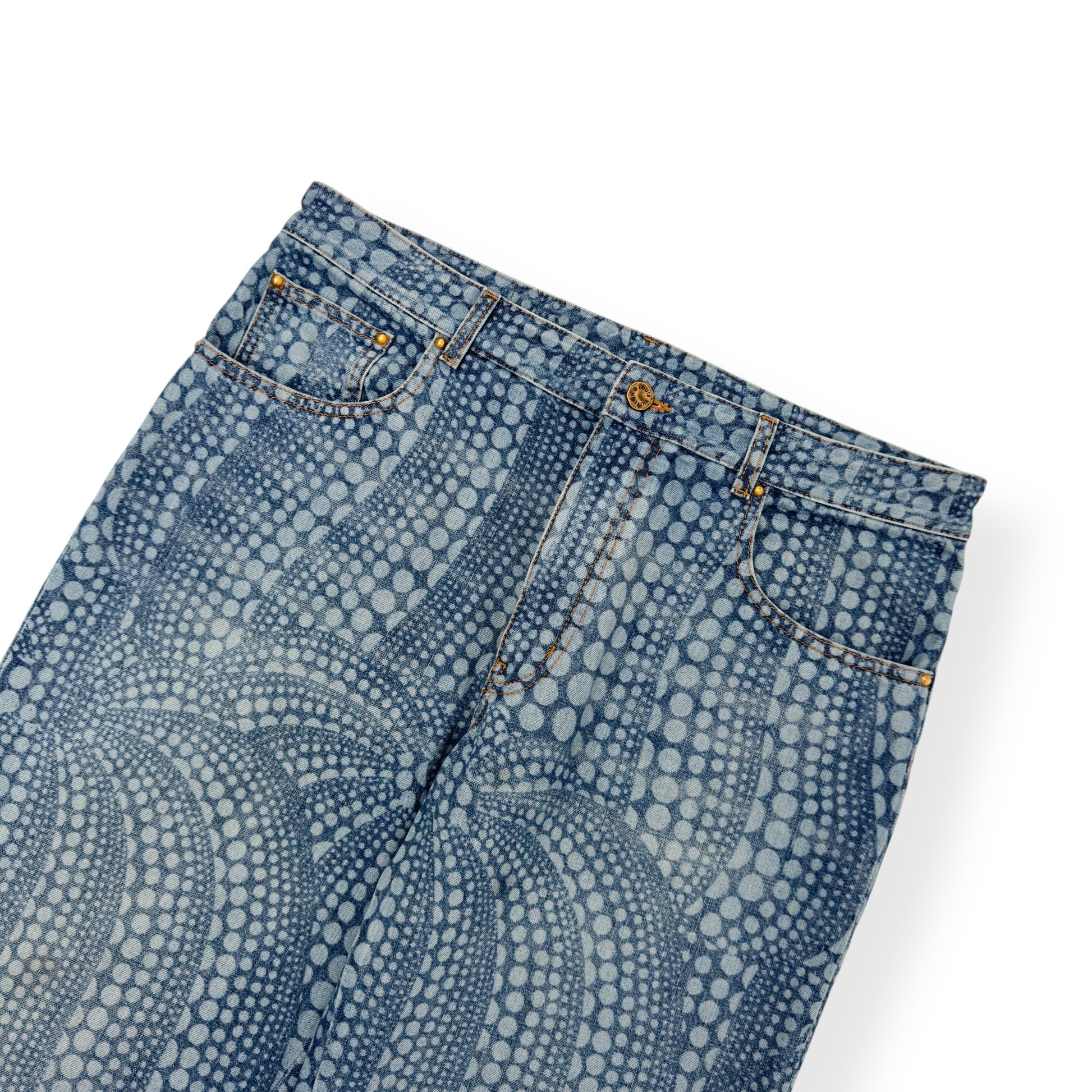 LOUIS VUITTON X YAYOI KUSAMA ALL OVER PUMPKIN GRAPHIC PRINT DENIM JEANS INDIGO W34” / L
