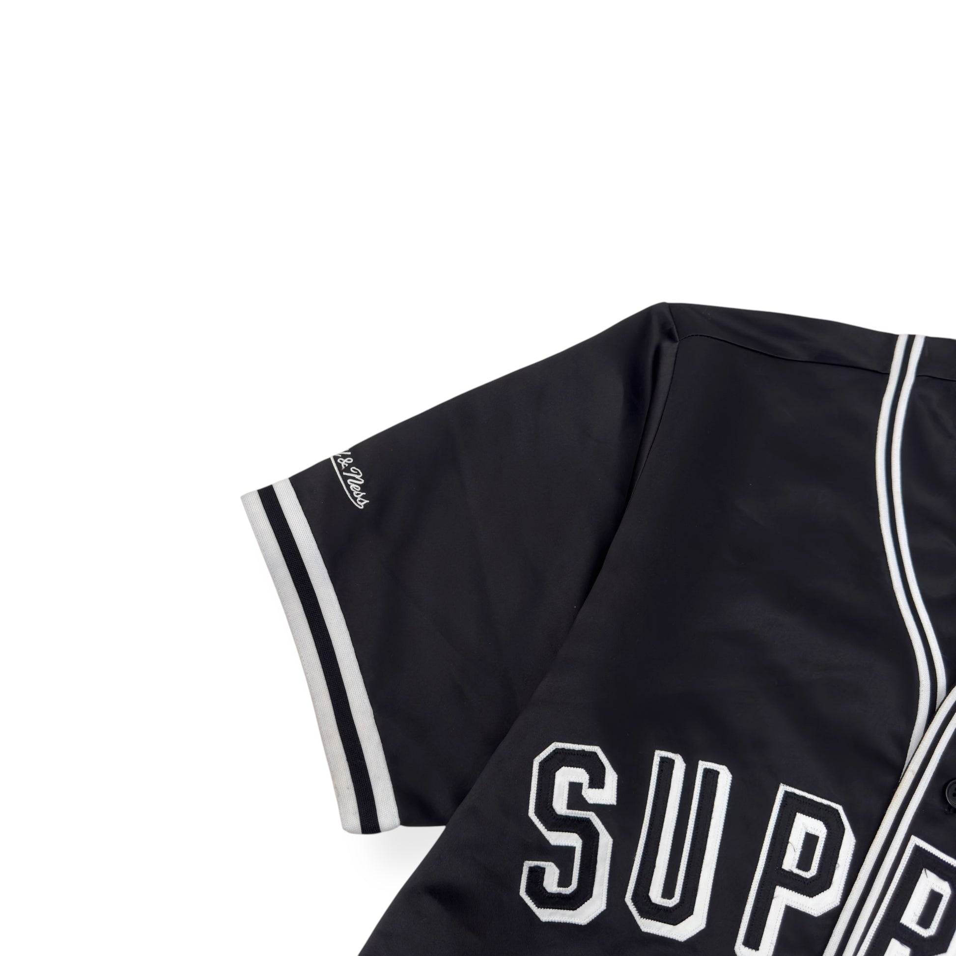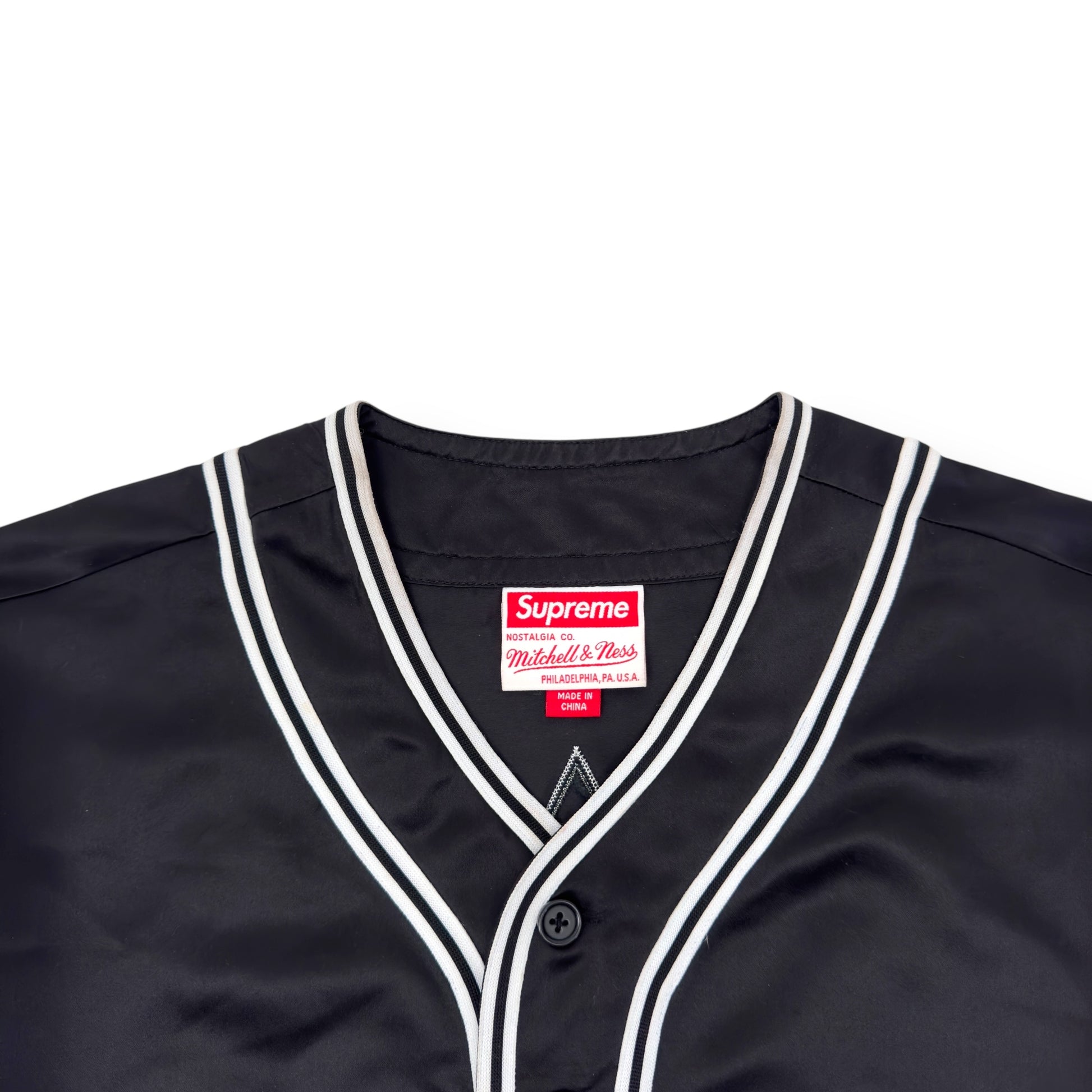 SUPREME MITCHELL & NESS SATIN BASEBALL JERSEY BLACK / WHITE M
